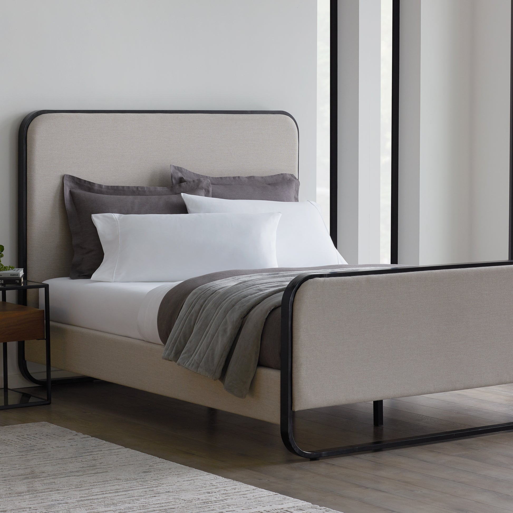 The interior design team at Malouf created a designer bed set so you can have superior style without any of the work. The Godfrey Bed was inspired by the sleek design of the 1960s and influenced by mid-century modern aesthetics such as rounded corners and